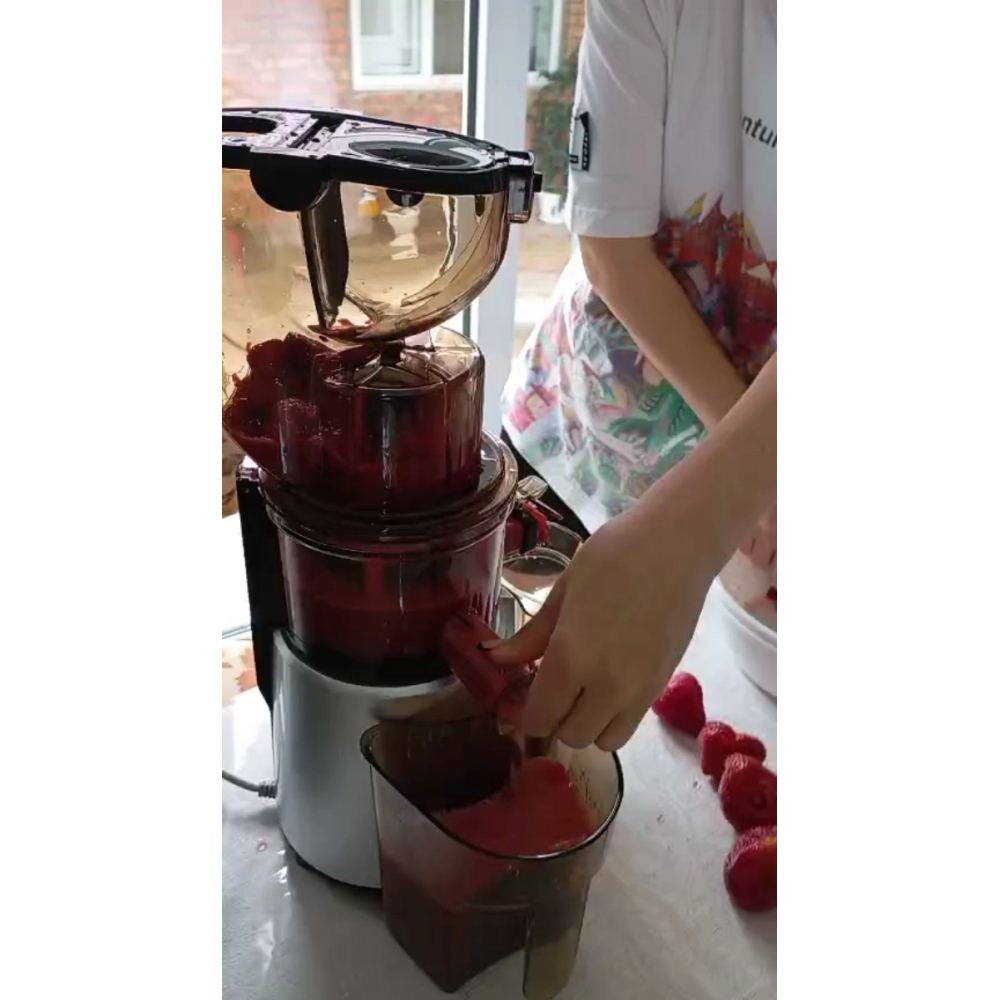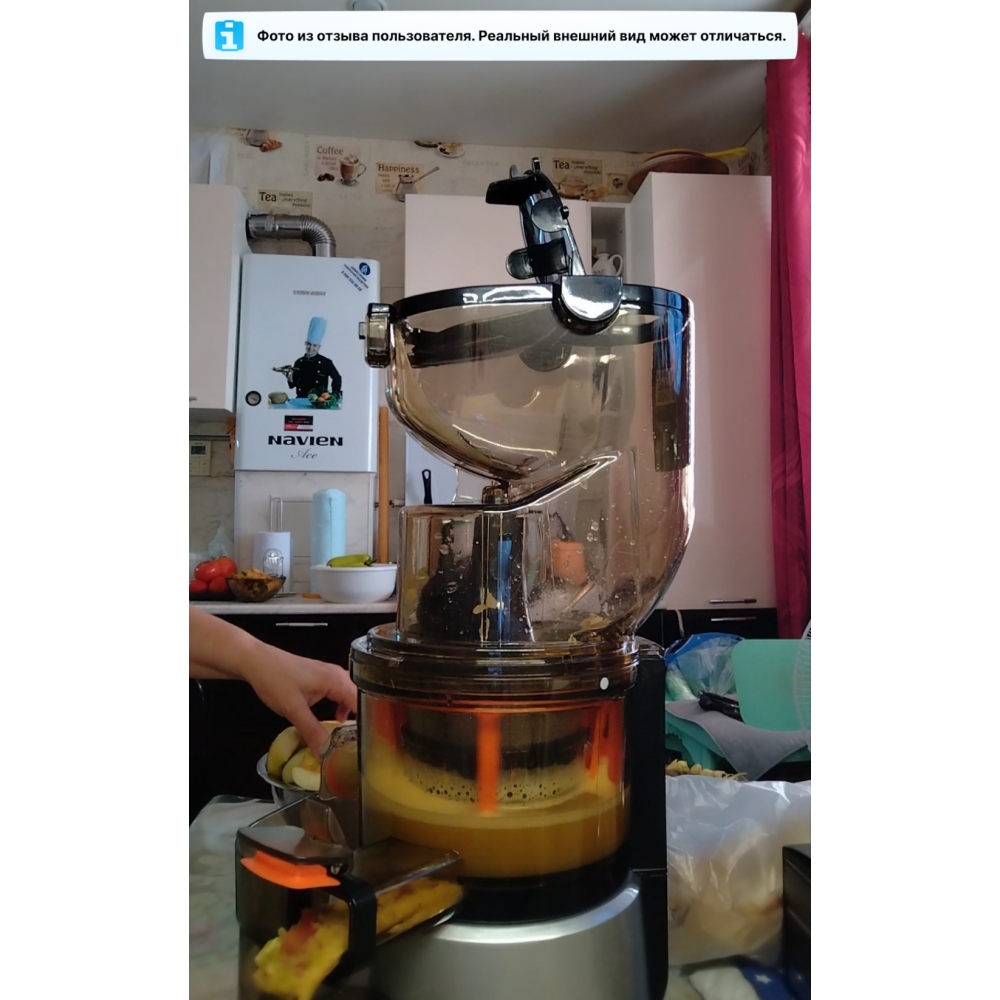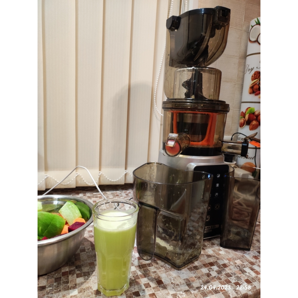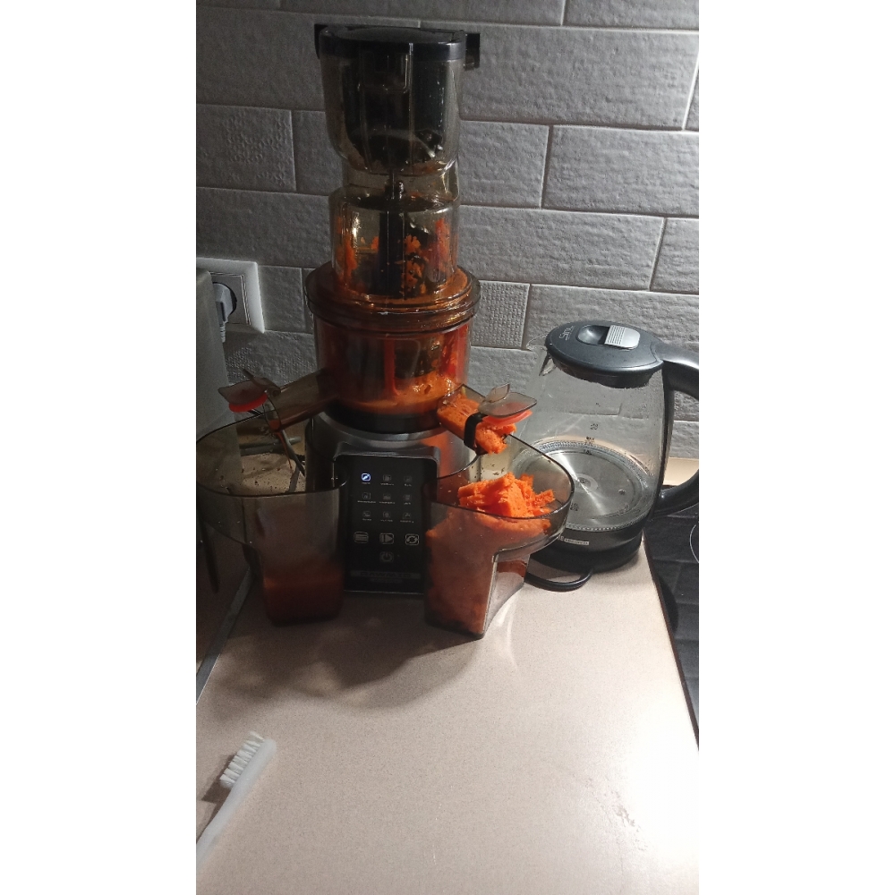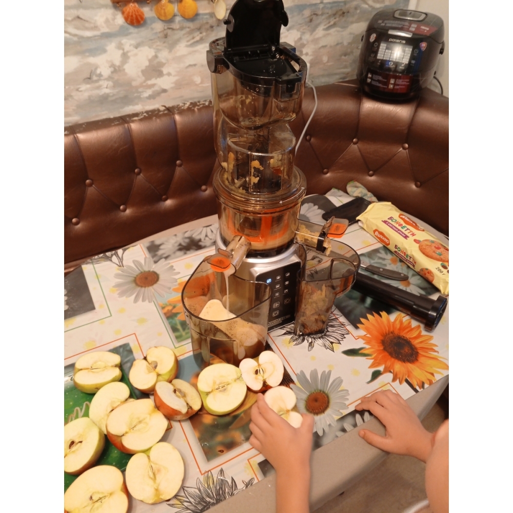 Благодаря мотору мощностью 200 Вт, аппарат может без труда отжать сок из твёрдых продуктов (например, моркови) или приготовить десерт из замороженных ягод и фруктов.