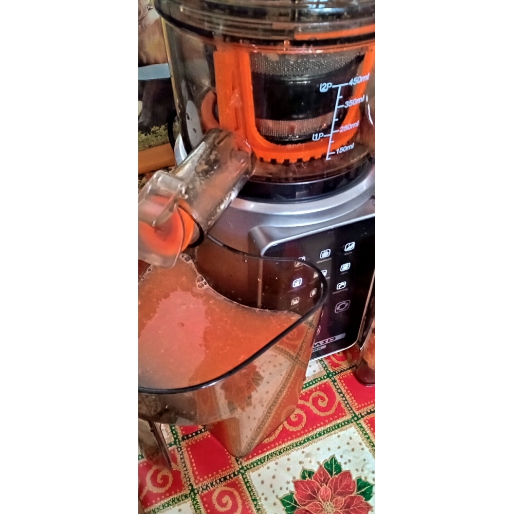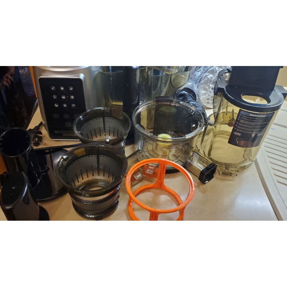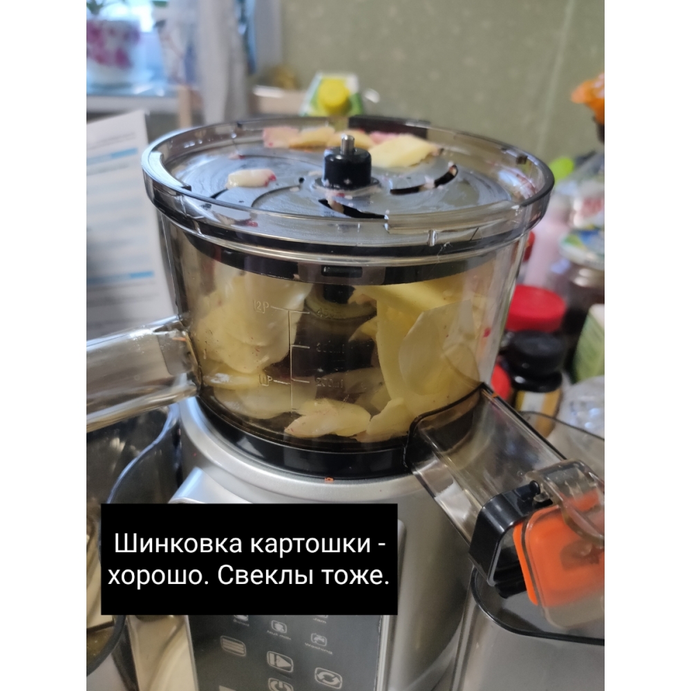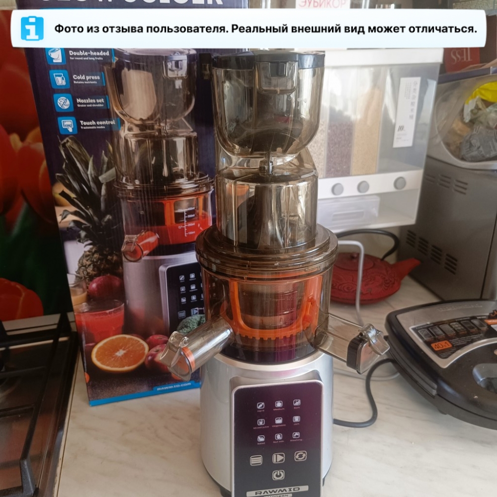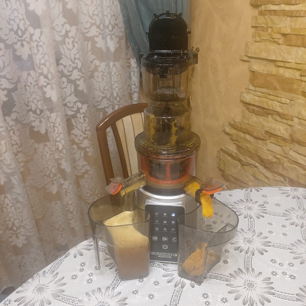 Благодаря мотору мощностью 200 Вт, аппарат может без труда отжать сок из твёрдых продуктов (например, моркови) или приготовить десерт из замороженных ягод и фруктов.