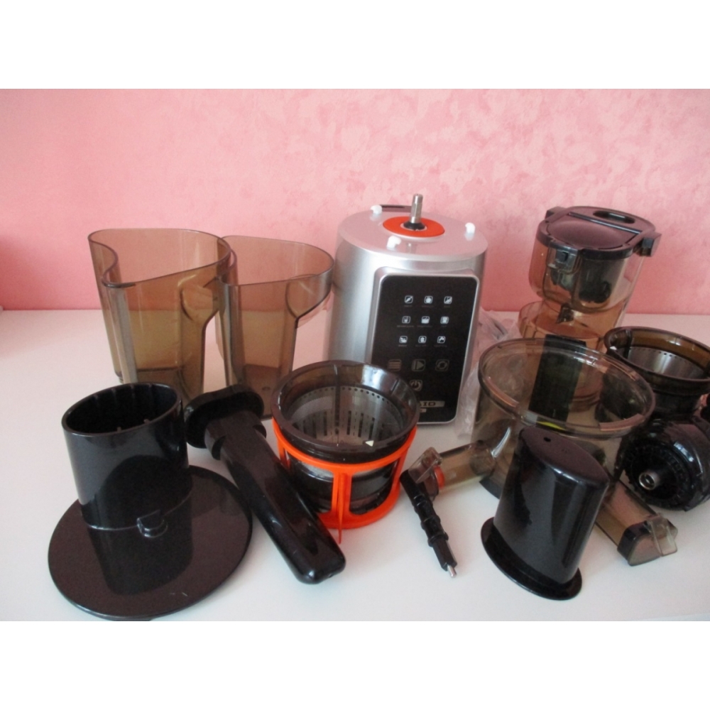 Благодаря нескольким насадкам, с помощью Dream Modern можно не только отжимать сок из овощей, ягод и фруктов, но и получать ореховое молоко, готовить сорбеты и мороженое, пюре, соусы, джемы, смузи. Коллекцию рецептов с участием этого кухонного помощника Вы можете посмотреть под этим описанием.