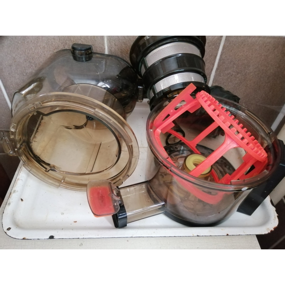Мыть шнековую соковыжималку рекомендуется не позже чем через 10 минут после использования, чтобы жмых не застревал на сеточке и других функционально важных элементах. Не стоит также использовать сильные химические очистители, которые способны испортить внешний вид пластиковых частей. В случае утери / деформации комплектующих (сеточек, шнека и т.д.) их всегда можно купить в нашем магазине по низкой цене.