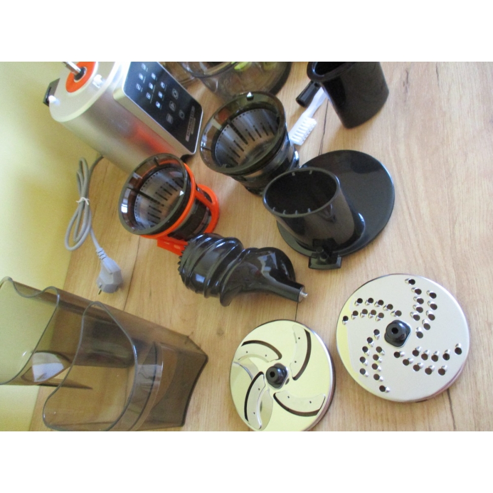 Оптимальная скорость вращения шнека – 45-55 оборотов в минуту – обеспечивает бережный отжим холодного типа. Это обеспечивает эффективный отжим соков без нагрева и почти без окисления и позволяет сохранить в продуктах максимальное количество полезных веществ – витаминов, энзимов, антиоксидантов.