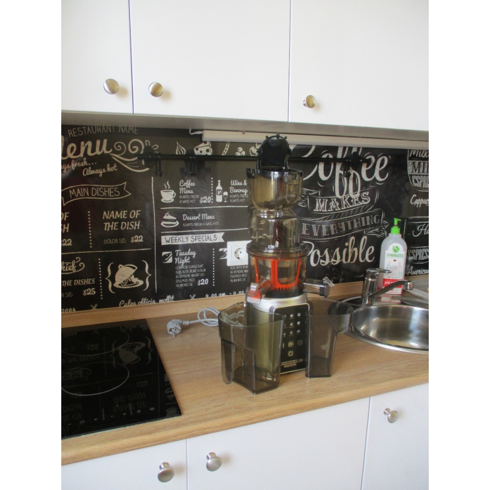 Соковыжималка Dream Modern оснащена гладкой сенсорной панелью, на которой расположены кнопки режимов и функций. Панель отзывчива даже к мокрым рукам, не пропускает влагу внутрь, легко моется (достаточно протереть поверхность влажной салфеткой).