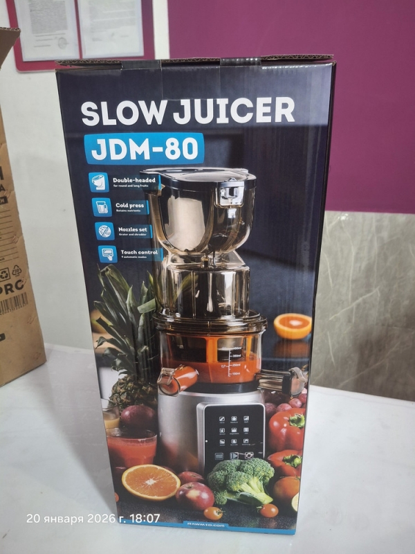 Шнековая соковыжималка Dream Modern JDM-80 от компании RAWMID объединила в себе инновации и проверенные технологии. Система бережного отжима уже давно доказала, что позволяет создавать самые полезные соки, и здесь она воплощена в лучшем виде. Среди новинок – сенсорная панель и 9 режимов работы; среди полезных дополнений – расширенный комплект с насадками. Конечно, внимания заслуживает и широкое горлышко, в которое проходят цельные плоды, и компактные размеры, рекордные для вертикальных соковыжималок. Соковыжималка Modern JDM-80 весьма мощная (200 Вт), поэтому если вы ищете соковыжималку для твёрдых овощей и фруктов, то рекомендуем обратить внимание на эту модель.