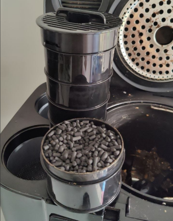 Оригинальный фильтр Xiaomi был наполнен угольными гранулами, которые должны были убирать запахи. Однако такое решение не будет работать эффективно: чтобы уголь убирал запахи, гранул должно быть столько, чтобы полностью закрывать всю поверхность фильтра. В Xiaomi их насыпали лишь для вида. Даже если углем полностью засыпать фильтр, этот слой будет фильтровать запахи недолго. У меня есть опыт использования бытового компостера, в котором для устранения запахов установлены два больших фильтра, наполненных гранулами угля. Эти гранулы отлично фильтруют воздух от запахов, но, увы, фильтры нужно менять раз в два месяца, после чего запахи вновь возвращаются.