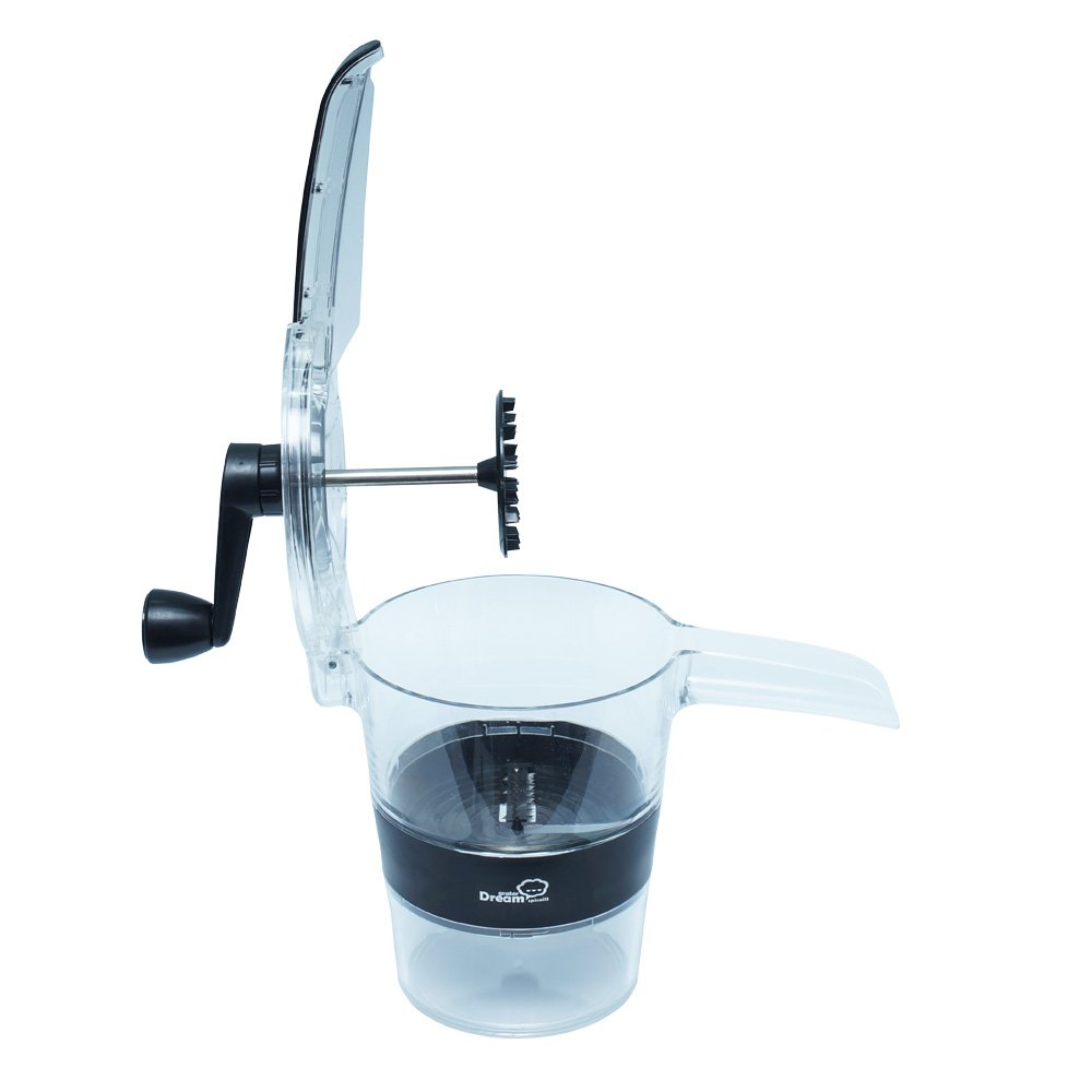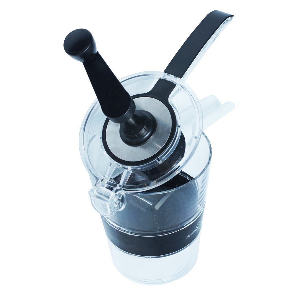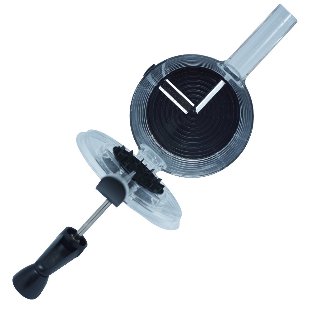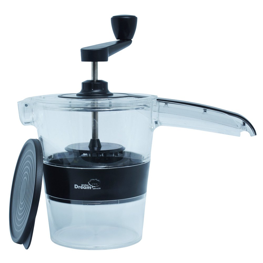 На крышке корпуса устанавливается ручка, которая приводит в движение спиральную тёрку. Устройство полностью механическое, а значит, не нужно тратить электроэнергию и все полезные вещества овощей переходят в блюдо в полном объеме.