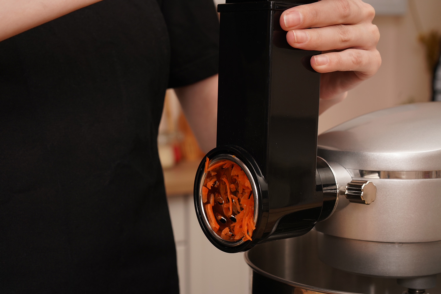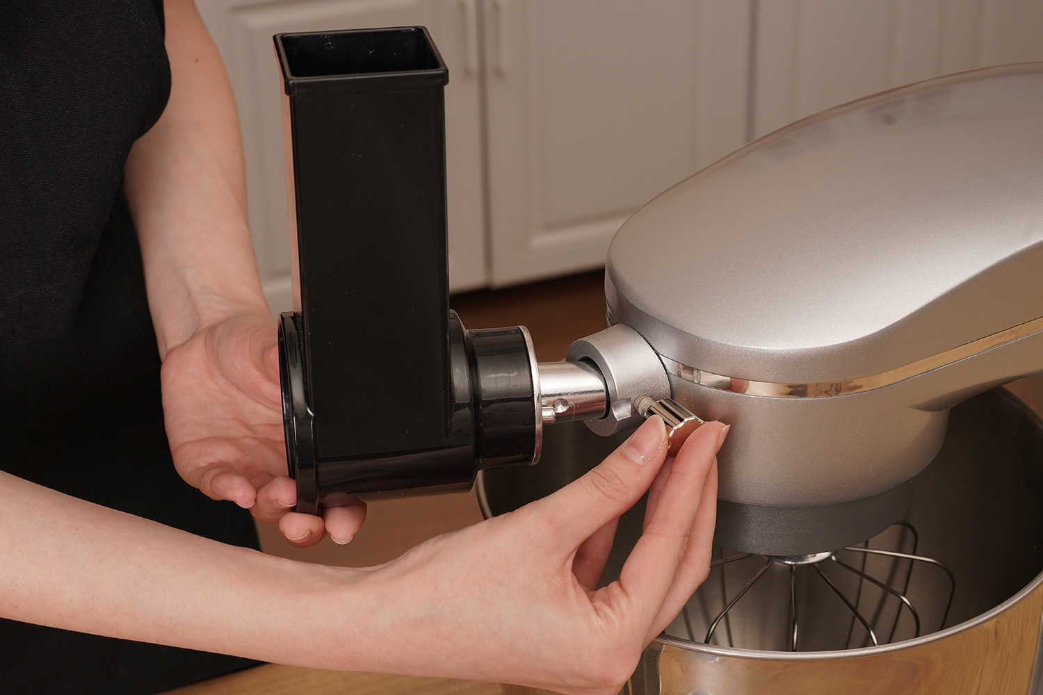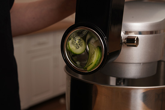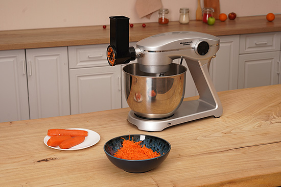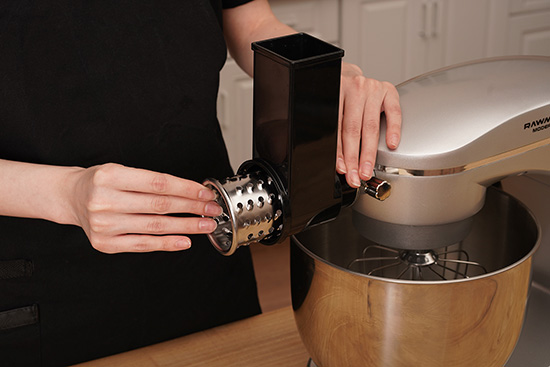 Овощерезка быстро и легко устанавливается на миксер в специальный разъём.