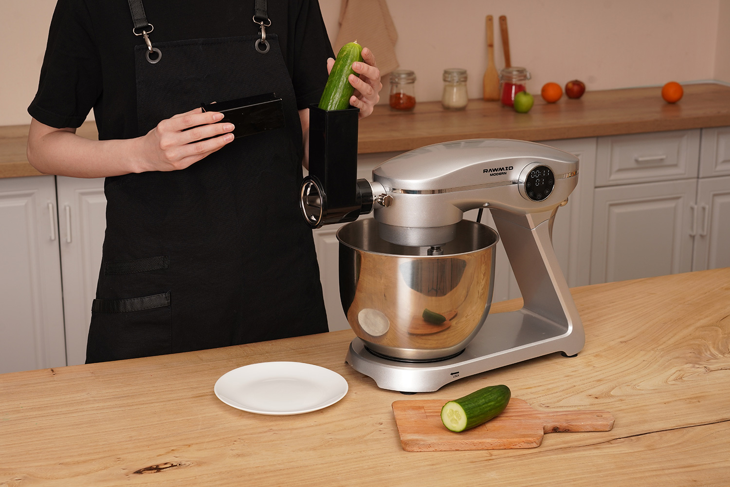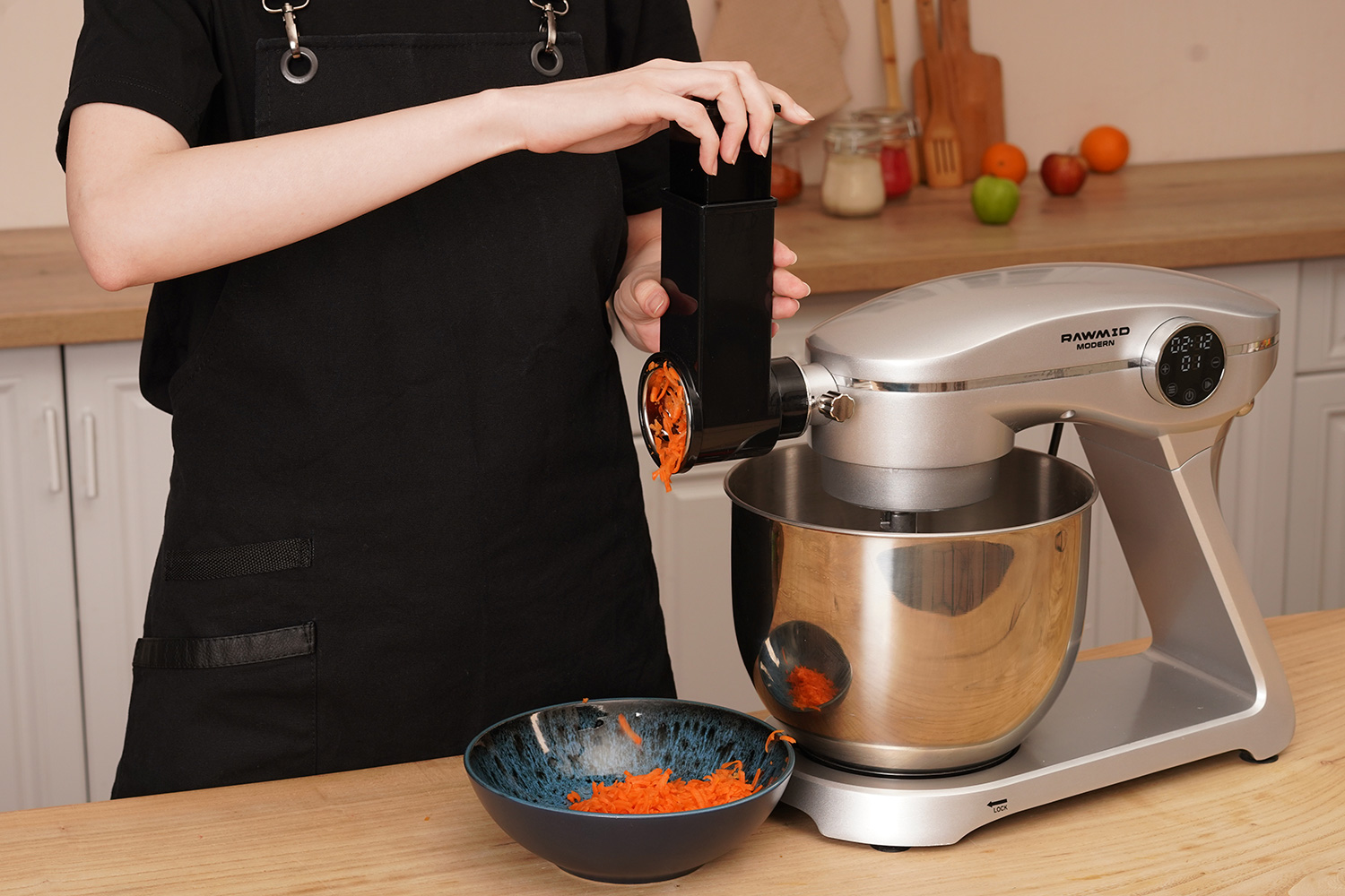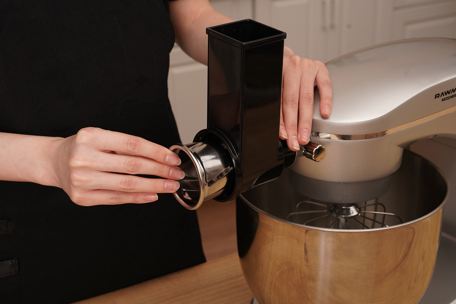 Овощерезка быстро и легко устанавливается на миксер в специальный разъём.