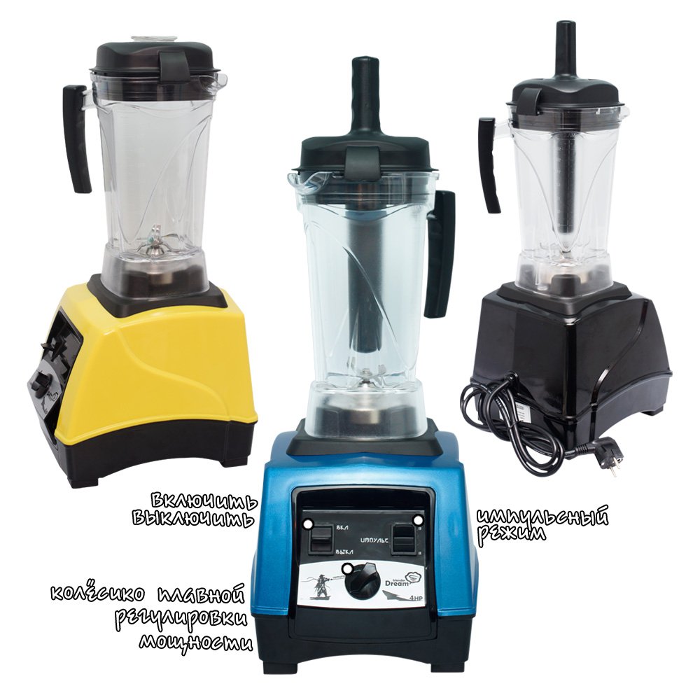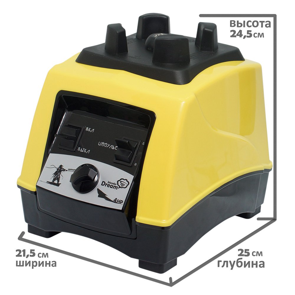 Профессиональный блендер Dream Samurai 4HP с классическим дизайном имеет массивный корпус из ABS-пластмассы и доступен в нескольких цветовых решениях. Его прорезиненные элементы – ножки и подкладка – существенно снижают уровень шума и вибрации при работе; на борту также мощная система охлаждения и защита от перепадов напряжения в сети