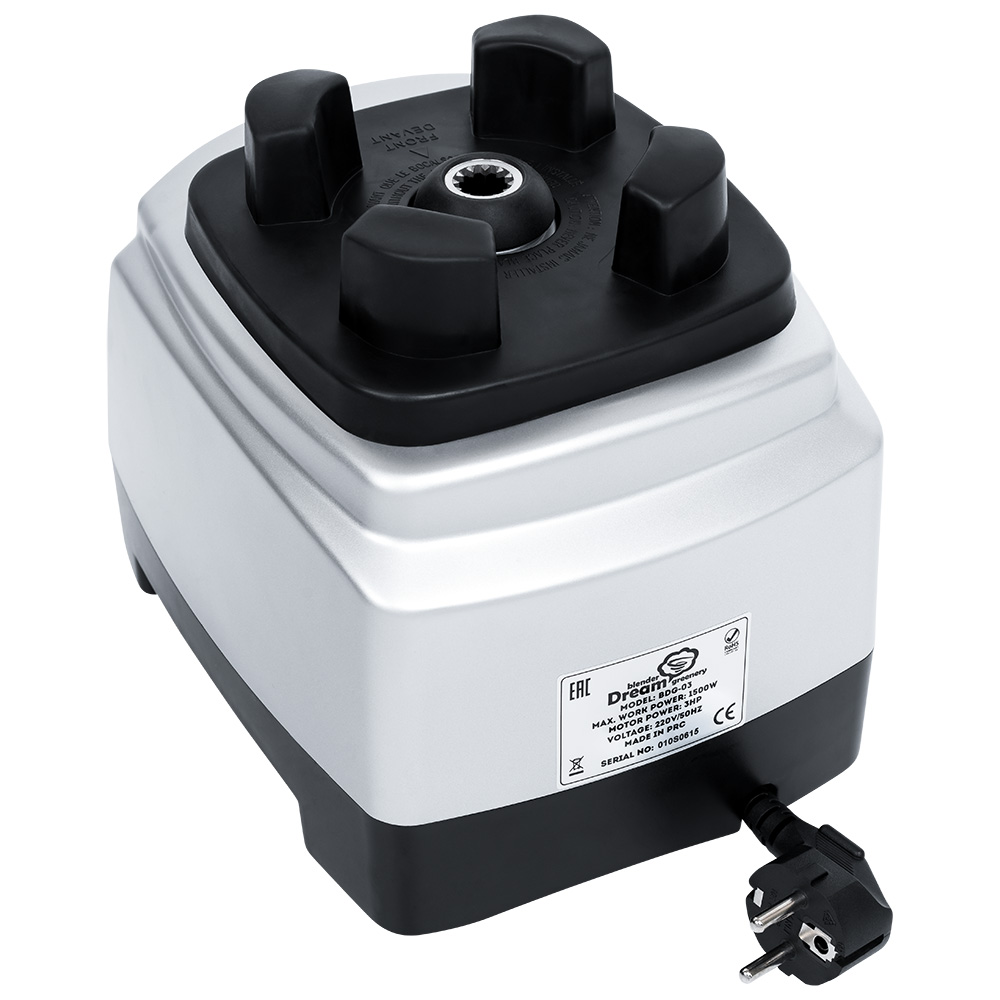 В основании моторного блока имеется отсек для хранения шнура питания, благодаря чему лишняя часть шнура никогда не будет мешаться на столе. Рядом расположена кнопка перезапуска блендера после срабатывания защиты от перегрузок, а также решётка вентиляции. В основании моторного блока имеются углубления, благодаря которым прибор удобно передвигать.