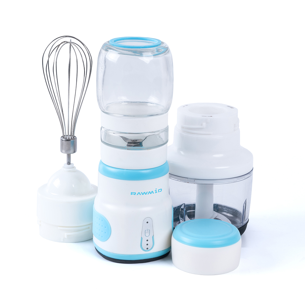 4. Расширенный комплект. В комплект юсб-блендера RAWMID входят две ёмкости, два ножа и дополнительный венчик с функцией миксера. Благодаря богатой комплектации, возрастает функциональность прибора и расширяется горизонт его использования.