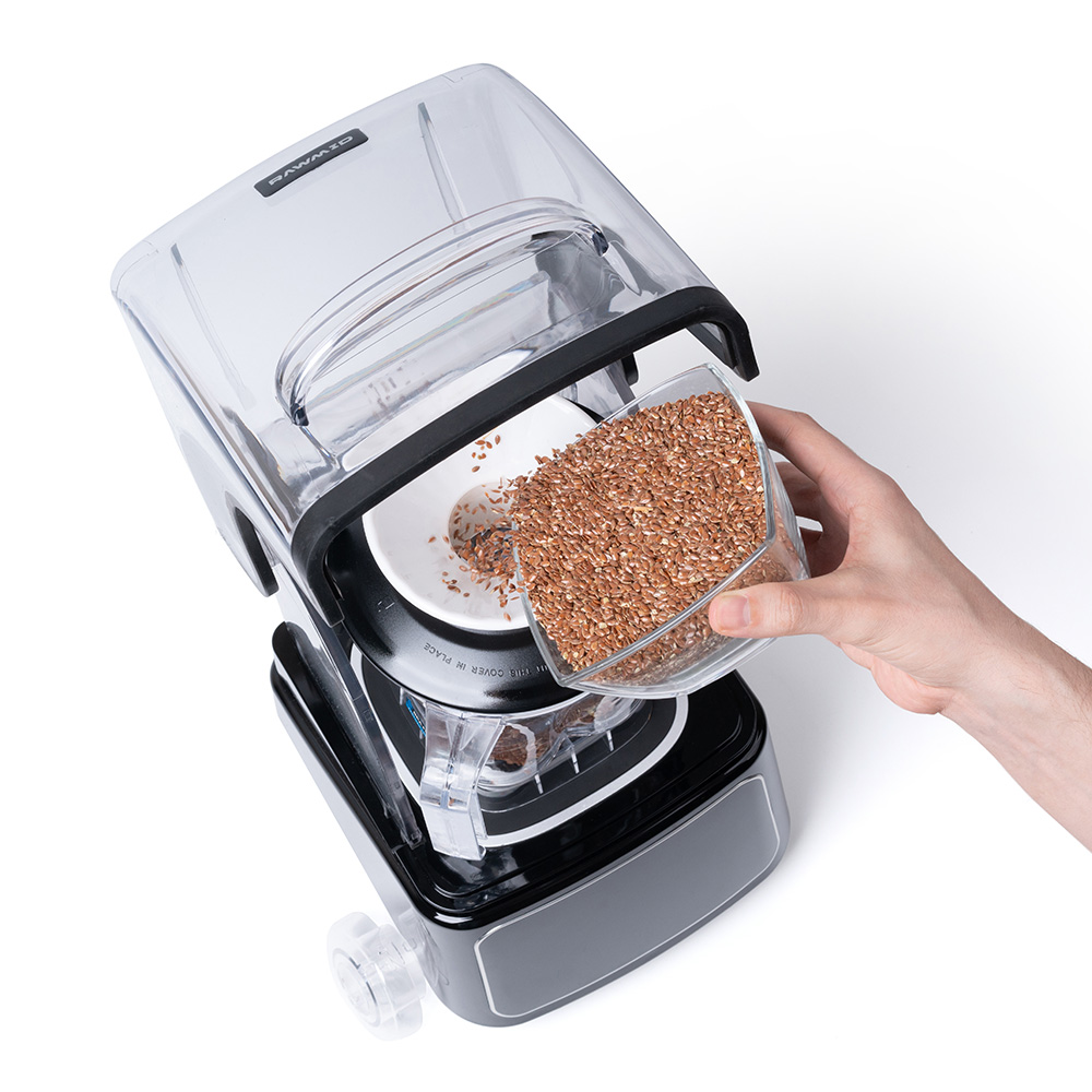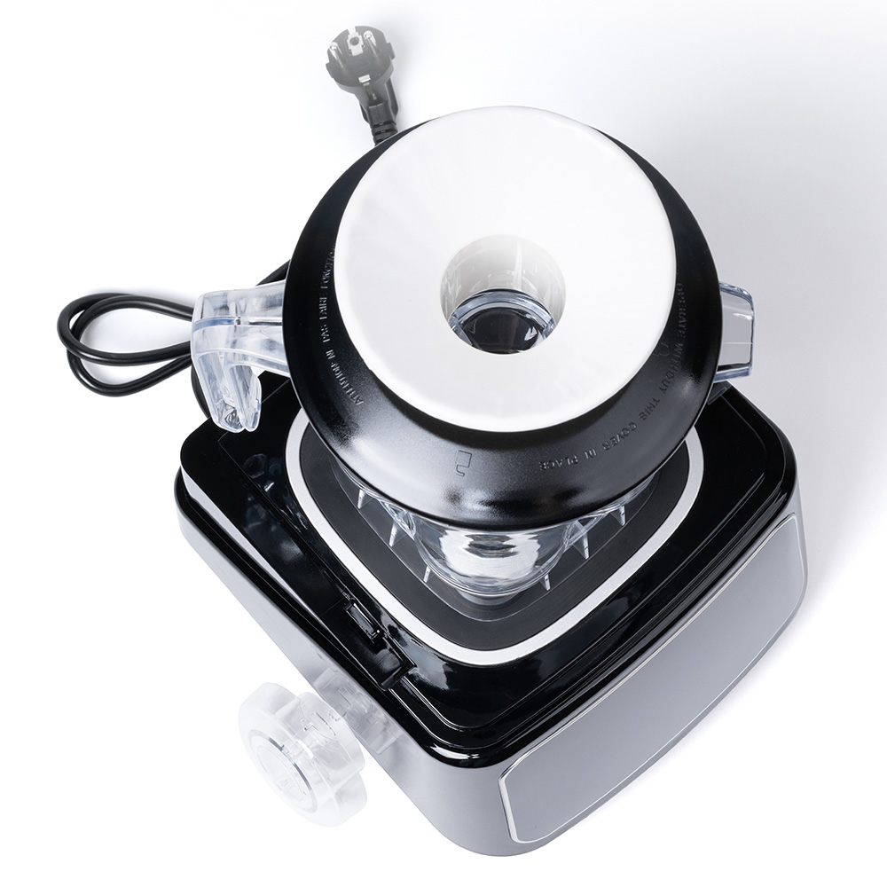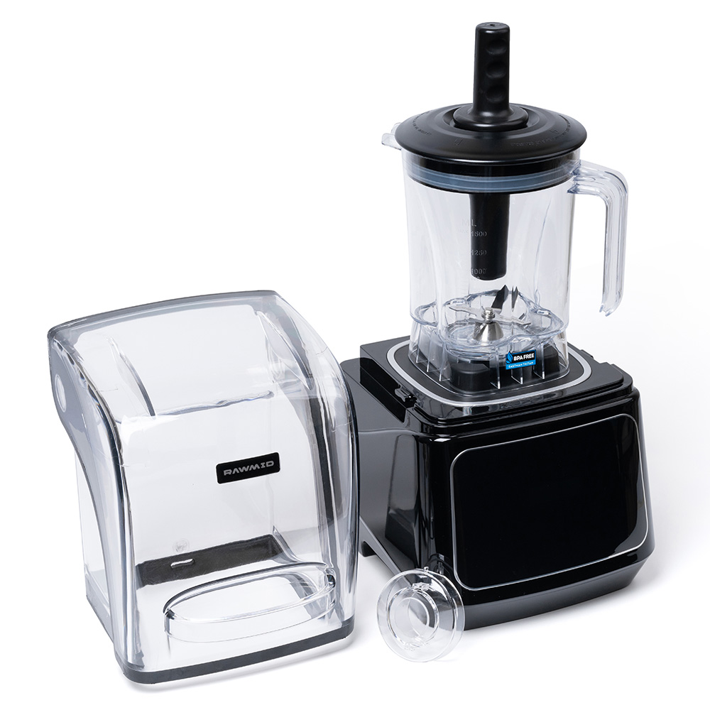 Особенность блендера RAWMID Professional – антишумовой колпак, который существенно снижает уровень шума во время работы c 88 дБ до 78 дБ. Также, если Вы забыли надеть на кувшин крышку, колпак сможет защитить ближайшее пространство (стол, стены) от брызг.
