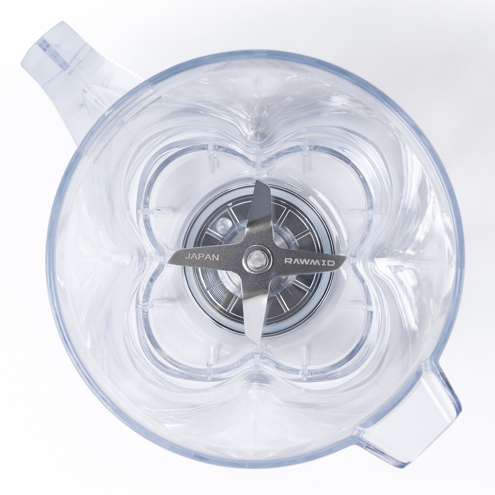 Блендер RAWMID Professional оснащён 8-лопастным ножом из нержавеющей стали. Лезвия ножа загнуты под разными углами для максимального захвата продуктов и, как следствие, наиболее эффективного и быстрого их измельчения.