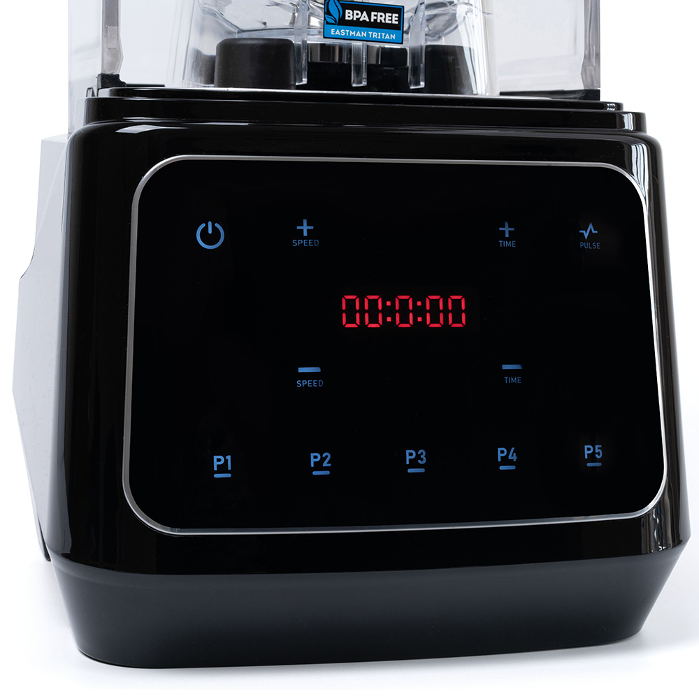 На панели управления можно выбрать один из пяти автоматических режимов. Каждый из режимов можно запрограммировать на своё усмотрение: программа будет состоять из 6 этапов измельчения — для каждого этапа задаётся время и скорость работы. Доступна и ручная настройка скорости и времени измельчения: всего предусмотрено 8 скоростей, а таймер можно установить от 5 до 90 секунд. Для кратковременного измельчения можно использовать импульсный режим.