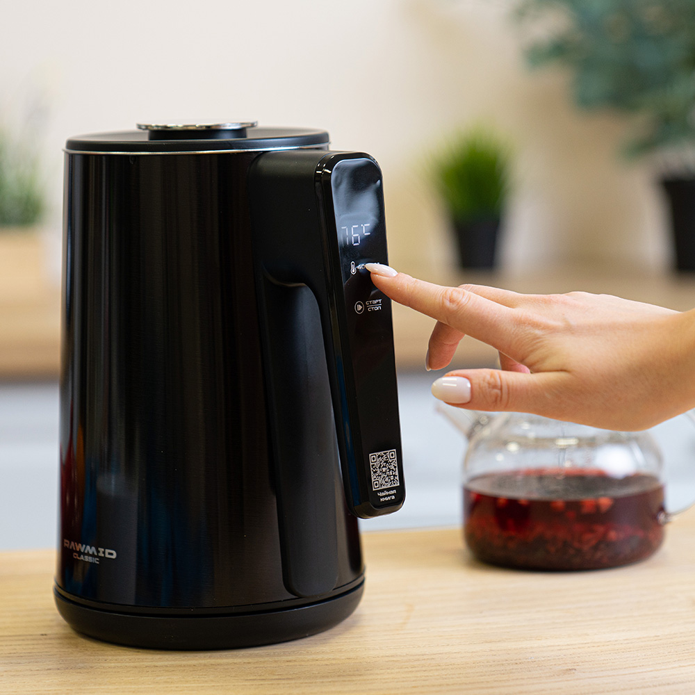 Чайник RAWMID Classic RCK-02 умеет не только кипятить воду, но и поддерживать заданную температуру. Чайник имеет несколько температурных режимов: 40, 50, 60, 80 и 90°С.