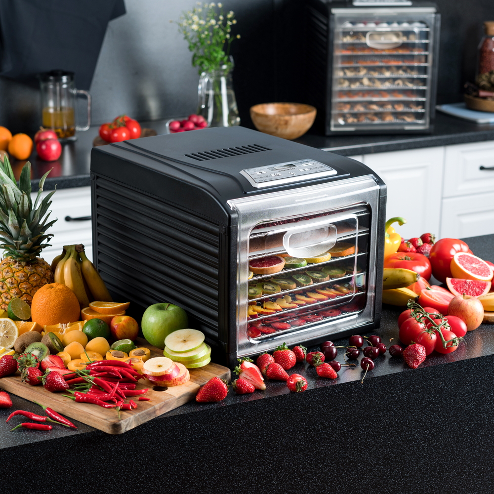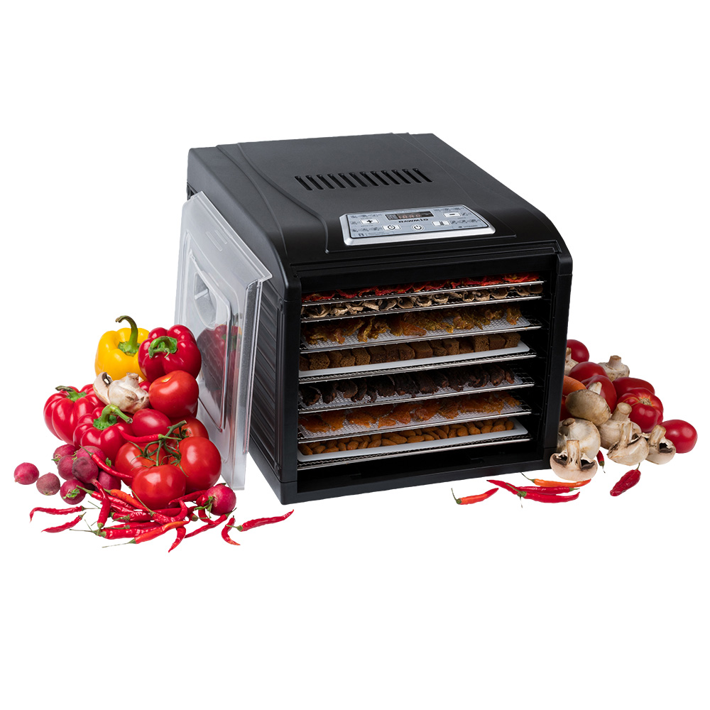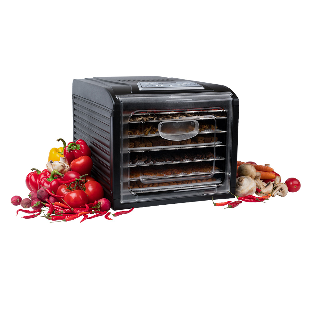 Электросушилка довольно проста в обслуживании и создана для комфортного использования. Основная задача по уходу за прибором заключается в его очистке от остатков пищи, ведь грязная сушильная камера может стать благоприятной средой для размножения бактерий. Чтобы предотвратить скопление крошек во внутреннем основании камеры, достаточно использовать сплошной поддон электросушилки для сбора мусора в качестве нижнего яруса. Остатки продуктов должны удаляться из дегидратора после каждой сушки.