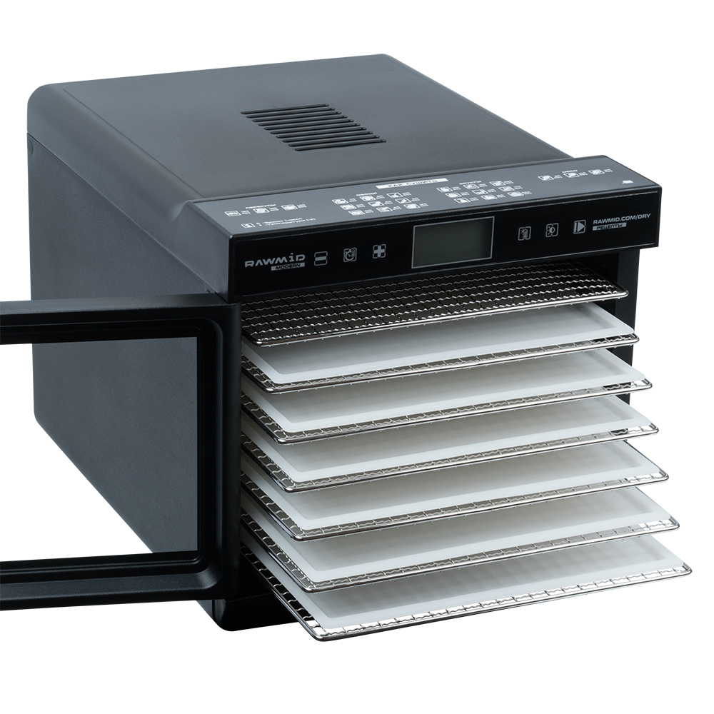 RMD-07 может работать с открытой дверцей, поэтому сушка продуктов с высоким содержанием влаги проходит безупречно. К ним относятся арбузы, дыни, персики или томаты. Влажный воздух будет быстро удаляться из дегидратора, так что готовка будет протекать весьма эффективно.