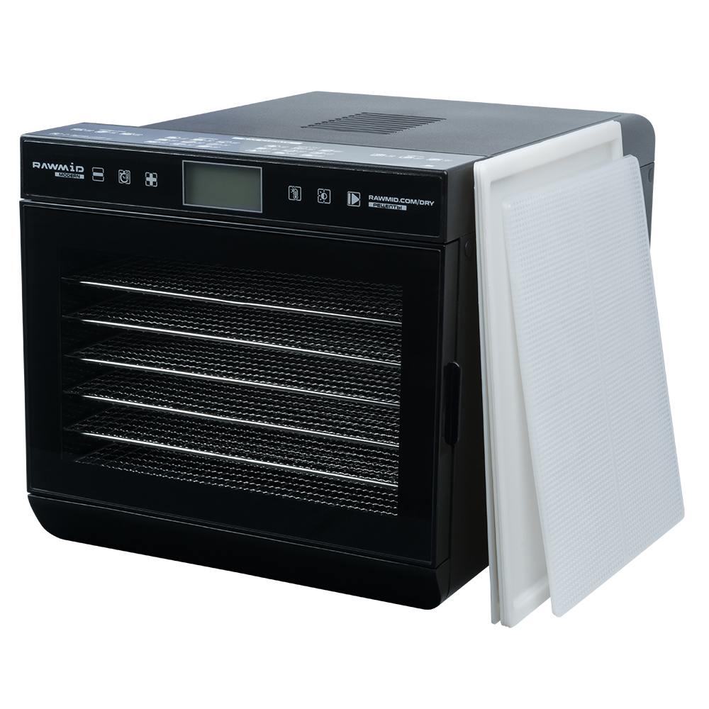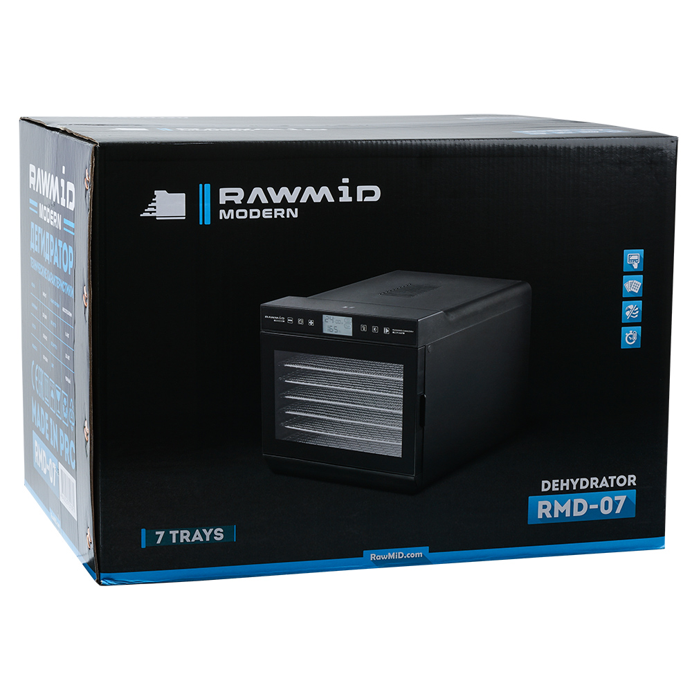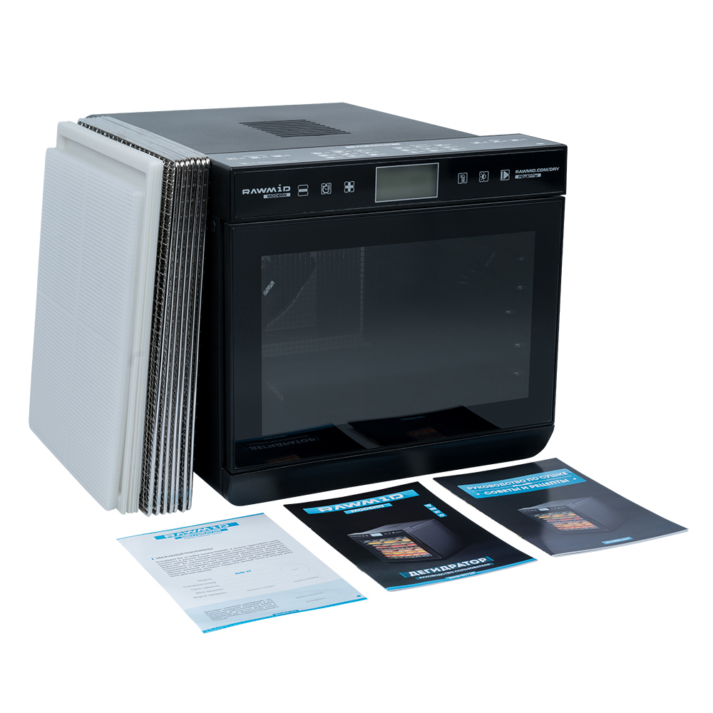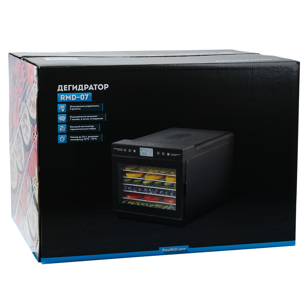 RMD-07 – это 7 стальных лотков, 6 поддонов с бортами и 6 сетчатых листов. Отличное управление, равномерный обдув продуктов и несколько автономных режимов – важнейшие преимущества для любого прибора. Кроме того, вы можете поддерживать уже готовый продукт в тепле благодаря соответствующей функции. Купить дегидратор RMD-07 можно на сайте Made In Dream с доставкой по России.