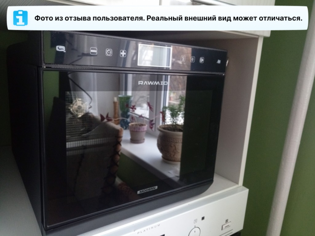 Современная сенсорная панель управления, дисплей и голубая подсветка создают привлекательный внешний вид для данного устройства. Сам прибор эргономичен в использовании благодаря стеклянной двери и прямоугольному корпусу.