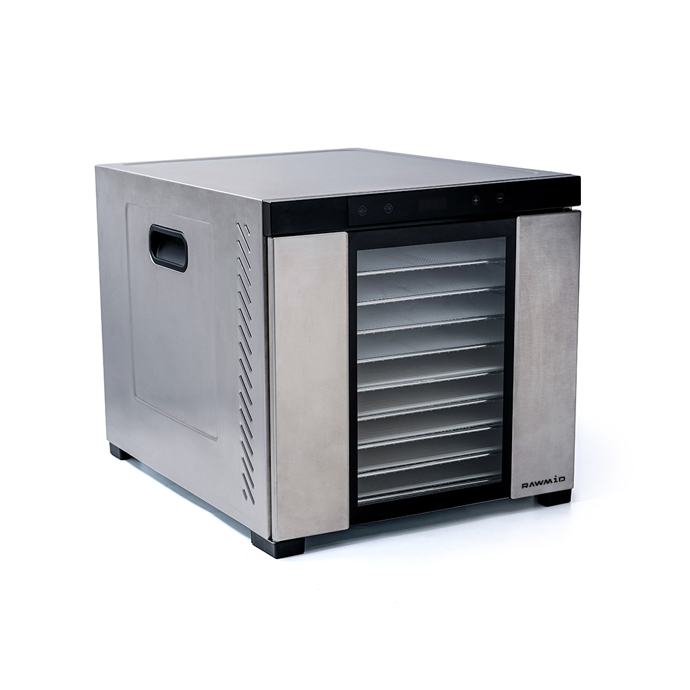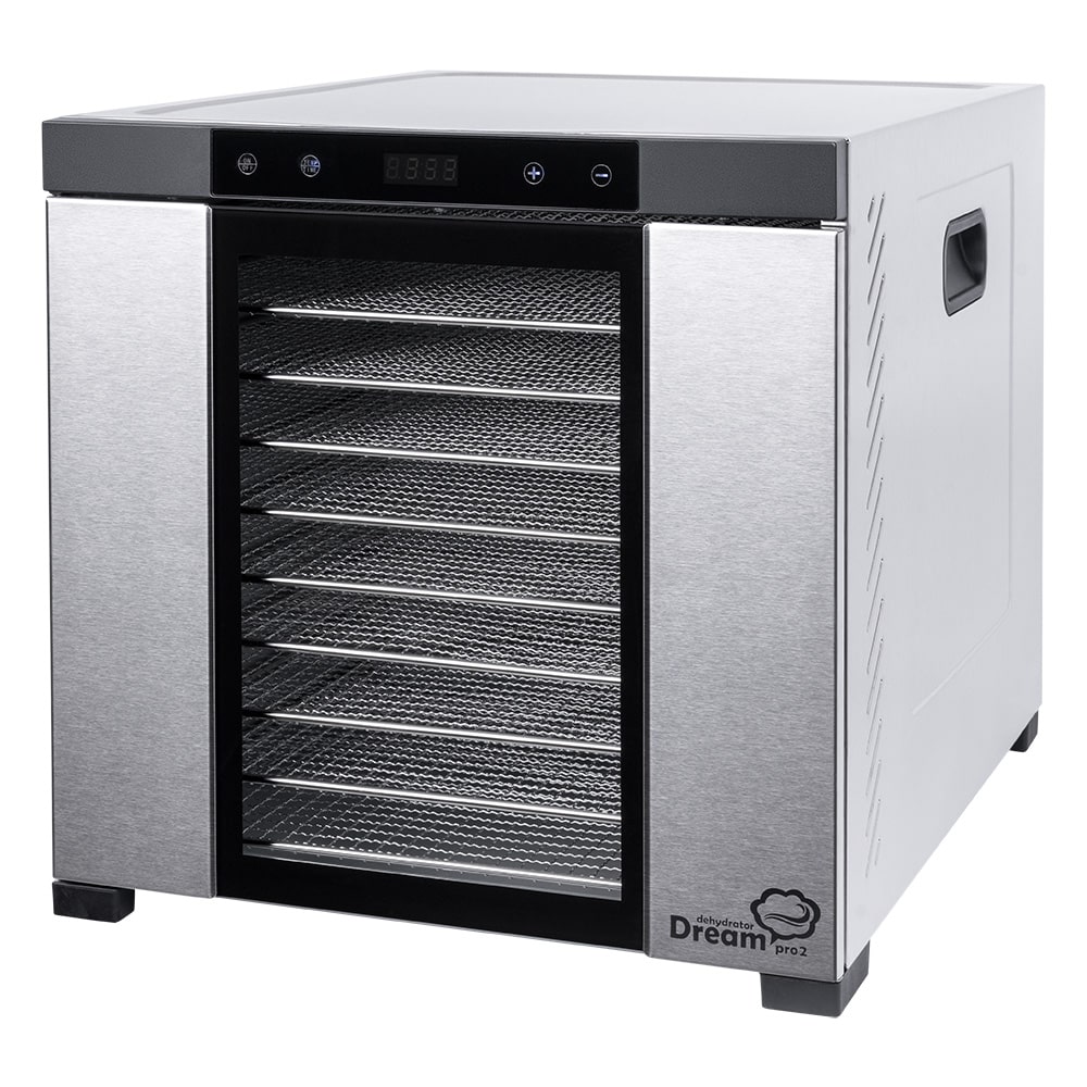 Профессиональный дегидратор RAWMID Dream PRO 2 – это обновлённая и усовершенствованная модель коммерческой сушилки для овощей и фруктов Dream PRO. Новая модель обладает увеличенной площадью сушки, двухслойным корпусом с прозрачной дверцей и повышенным временем беспрерывной работы. На смену кнопкам пришла сенсорная панель управления с красивым двухцветным дисплеем. Вместо металлической заслонки – удобная дверца из закалённого стекла с магнитным замком.