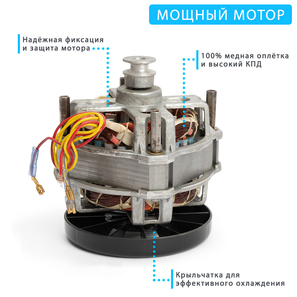 Мотор мощностью 200 Вт обеспечивает надёжное измельчение любых ингредиентов, будь то вязкая шоколадная масса или твёрдые орехи.
