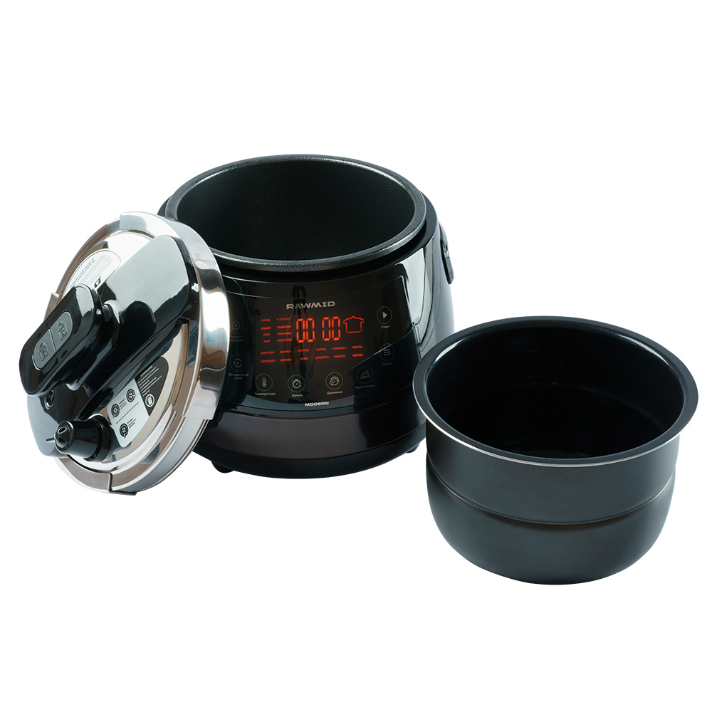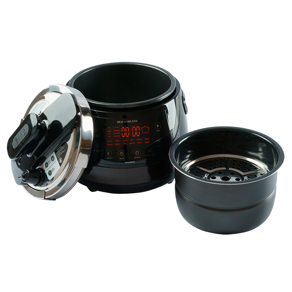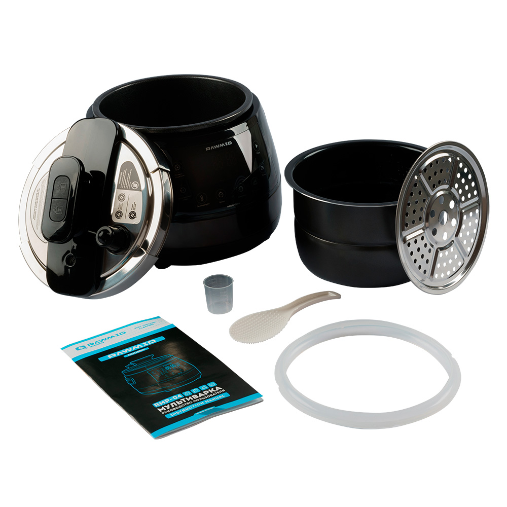 В мультиварке RAWMID RMP-04 можно жарить продукты — в таком режиме прибор используется без крышки. Вы сможете пожарить любые продукты, при этом во время жарки будет меньше брызг, в сравнении со сковородкой.