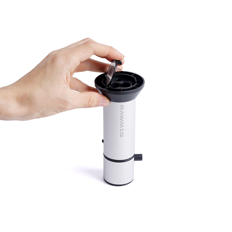 2. Простой в использовании. При работе с RAWMID Aroma Smoking Gun Вам не потребуется никаких дополнительных устройств, например, компрессоров, подключаемых в розетку. Также Вам не нужно совершать сложных манипуляций со сборкой аппарата. Просто вставьте в него батарейки, шланг, загрузите щепу, нажмите кнопку включения, подожгите щепу. Второй конец шланга поместите в пакет или контейнер с продуктами. Время работы дымогенератора – 30 секунд. Время настаивания продукта в ёмкости с дымом – от 1 до 5 минут.