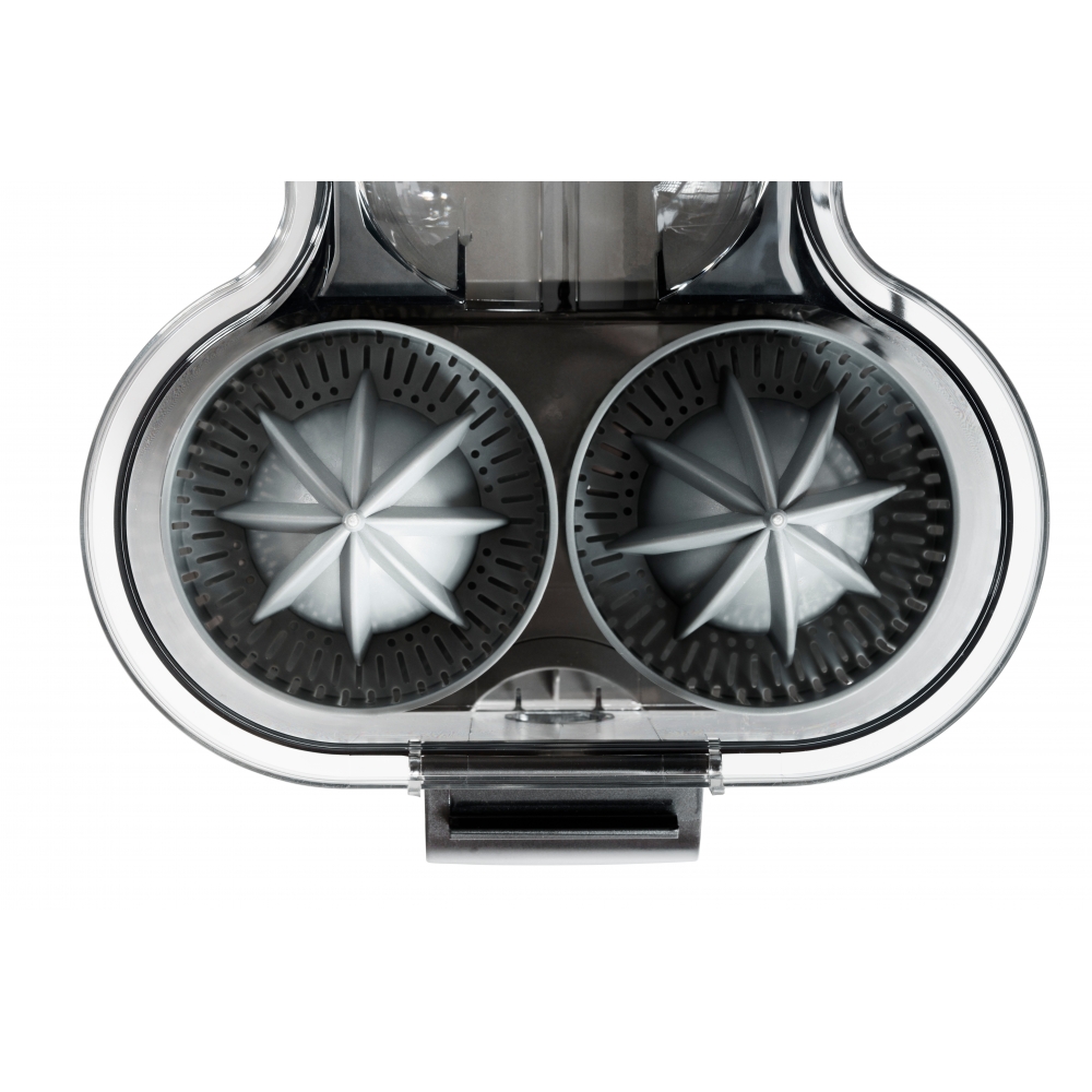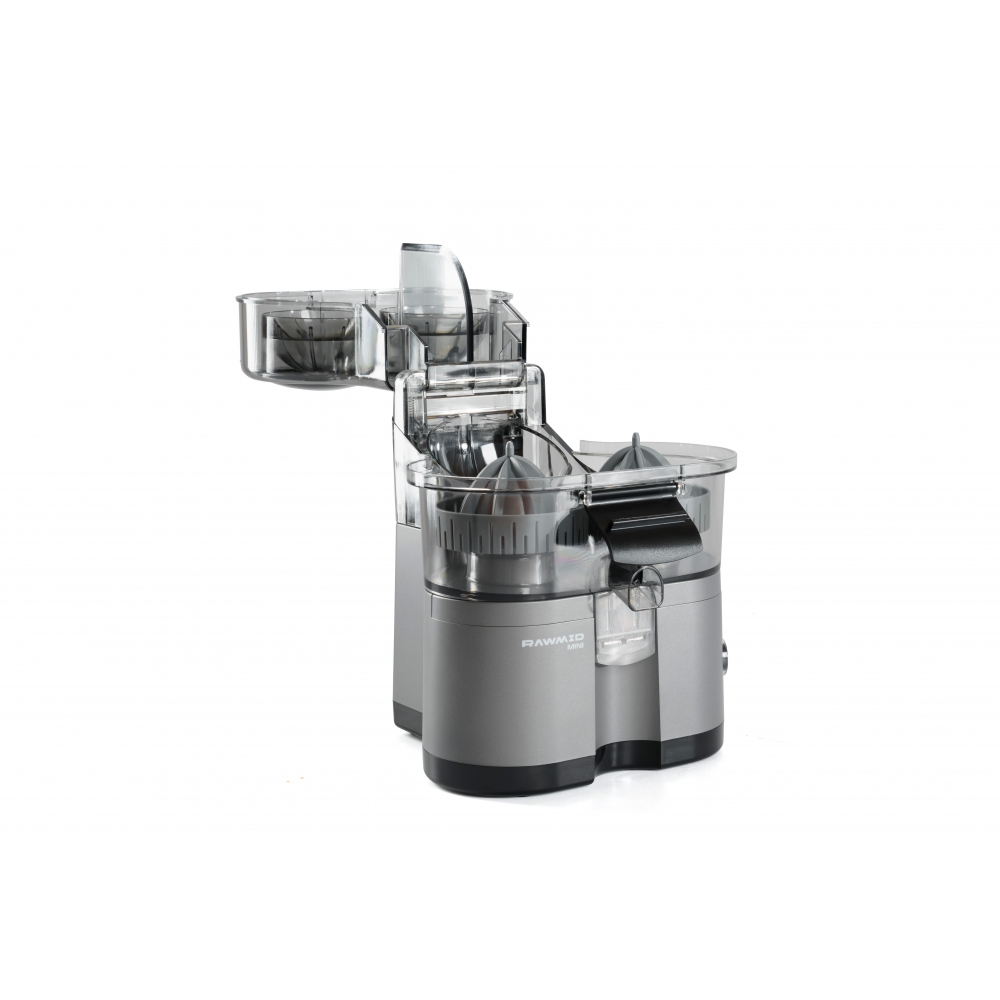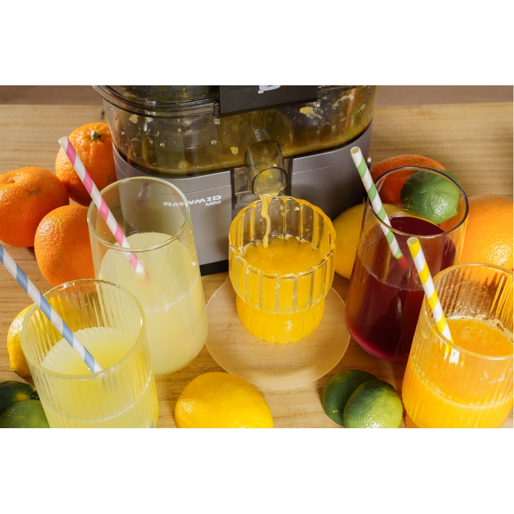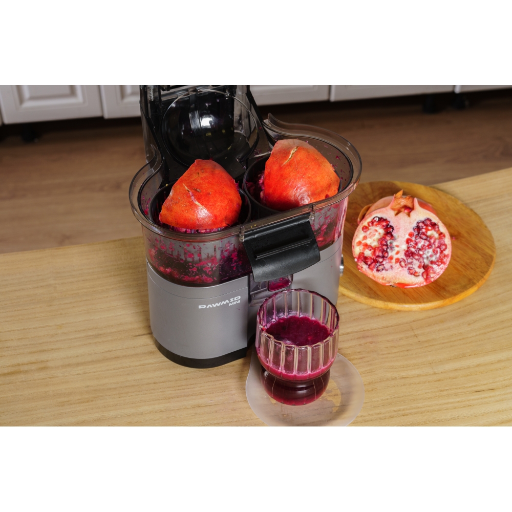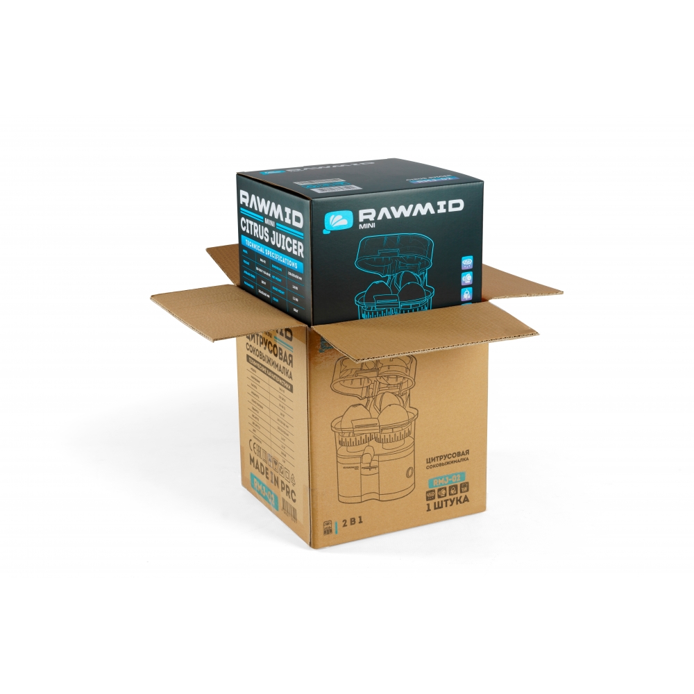 RAWMID Mini RMJ-02 — это автоматическая соковыжималка для цитрусовых нового поколения, которая делает процесс приготовления свежевыжатого сока невероятно простым, быстрым и гигиеничным. Благодаря уникальной конструкции с двойным конусом и встроенным ножом-резаком, аппарат полностью автоматизирует цикл отрезания и отжима — никаких ножей, досок и необходимости удерживать фрукт руками!