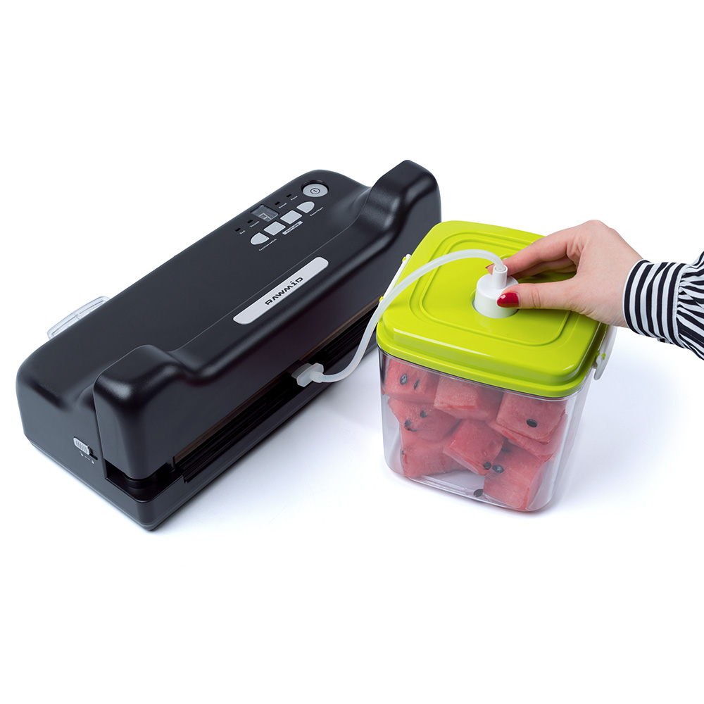 Вакуумный упаковщик RAWMID Future RFV-03 – это бытовой прибор для герметичной вакуумной упаковки продуктов или других вещей. Вакууматор полезен для продления срока хранения продуктов, а также готовки блюд по методу sous-vide (су-вид).