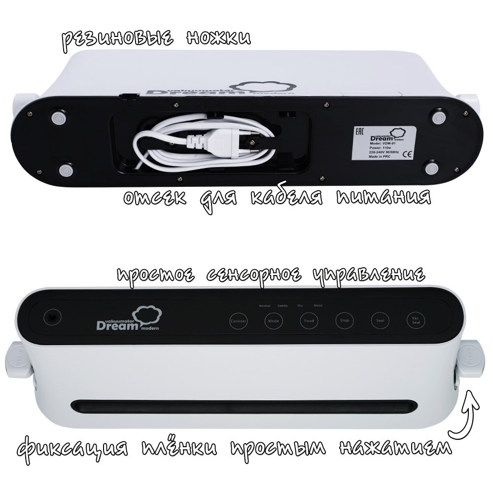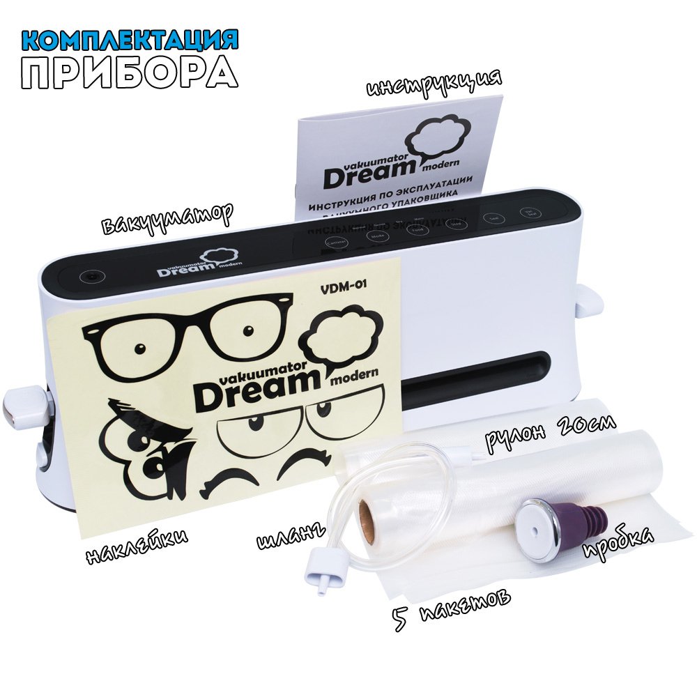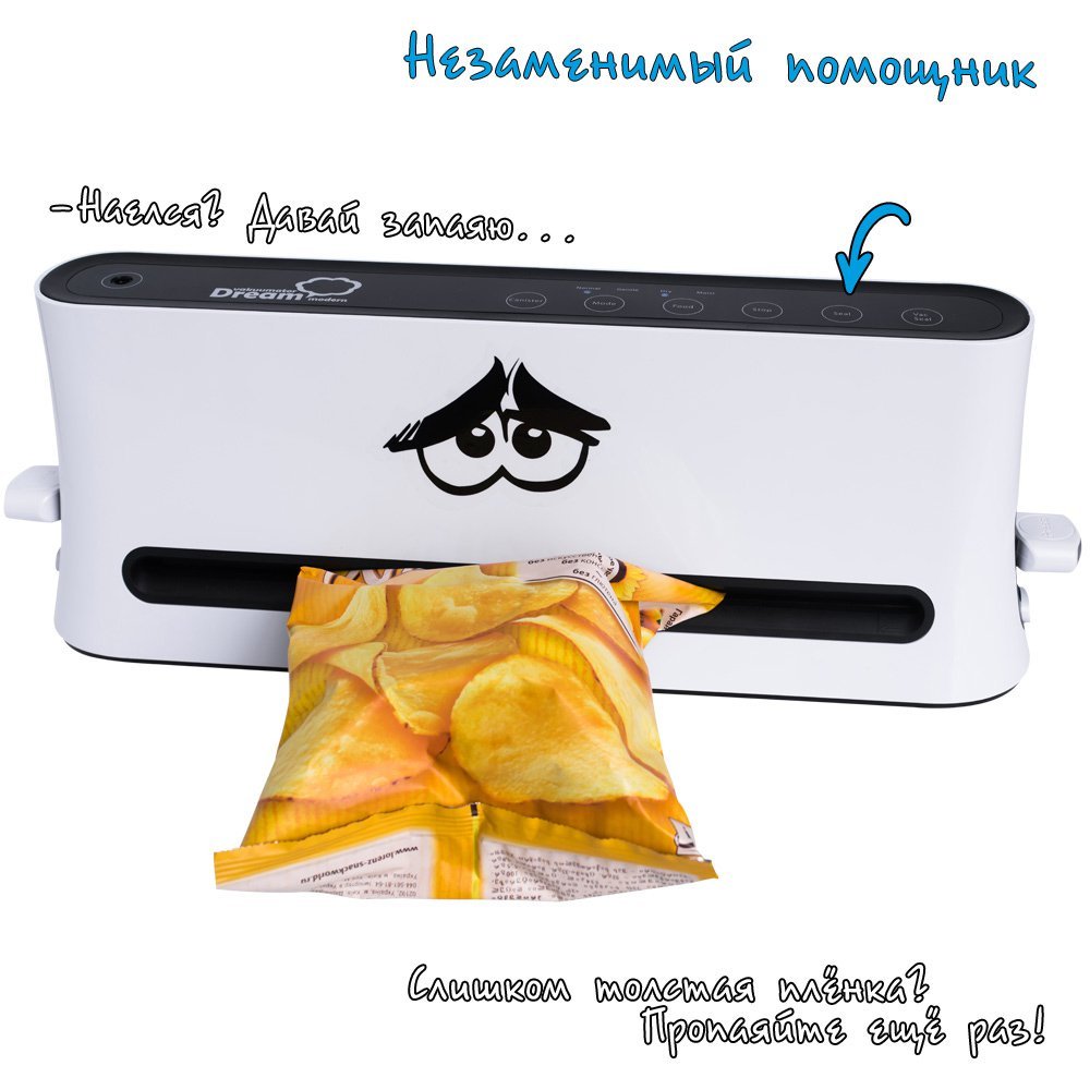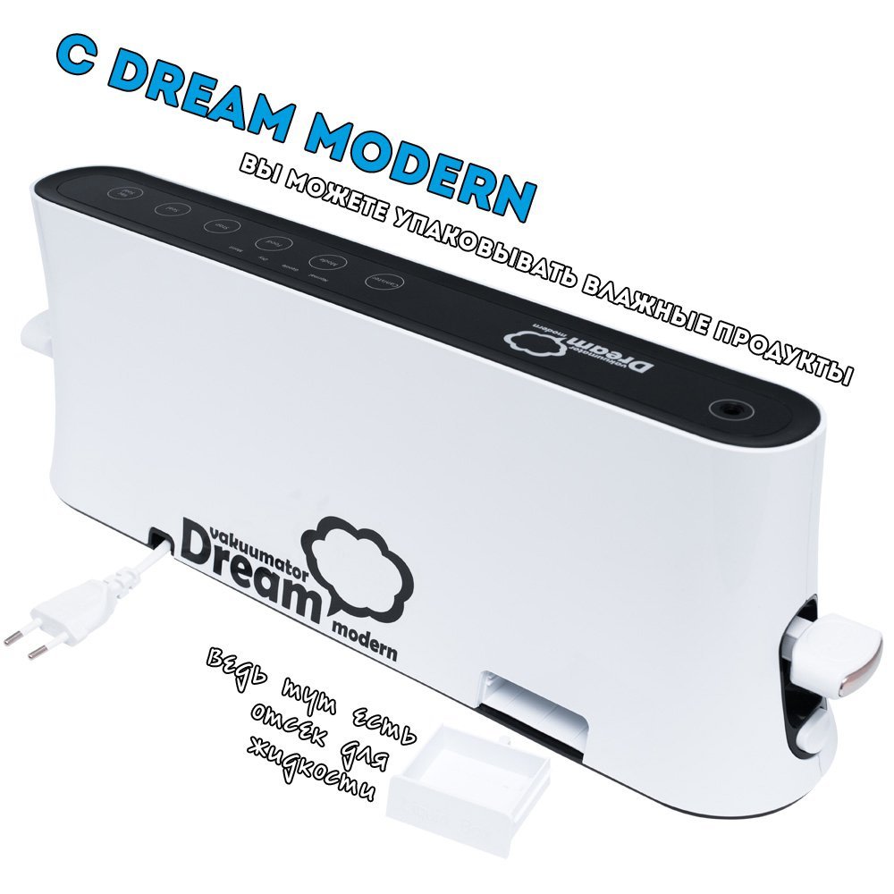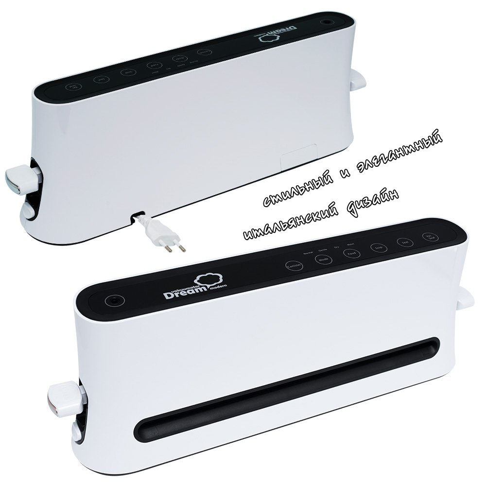 Итак, Dream Modern VDM-01 имеет преимущества над большинством вакууматоров: он компактный и функциональный, может упаковать влажный продукт. Иметь такого помощника удобно, а главное – экономично, ведь с ним можно практически позабыть о пропавших продуктах.
