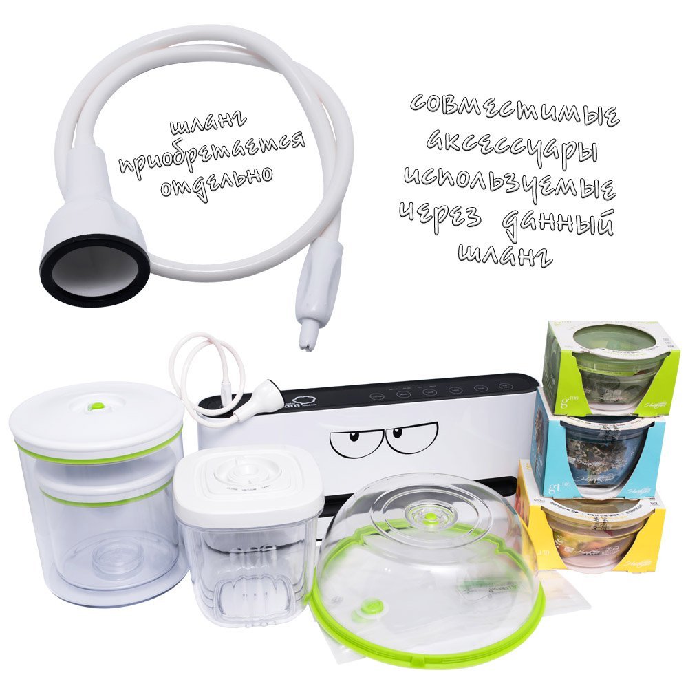 1. Современный набор функций. Вакуумирует и запаивает пакеты, через шланг откачивает воздух из контейнеров и бутылок.