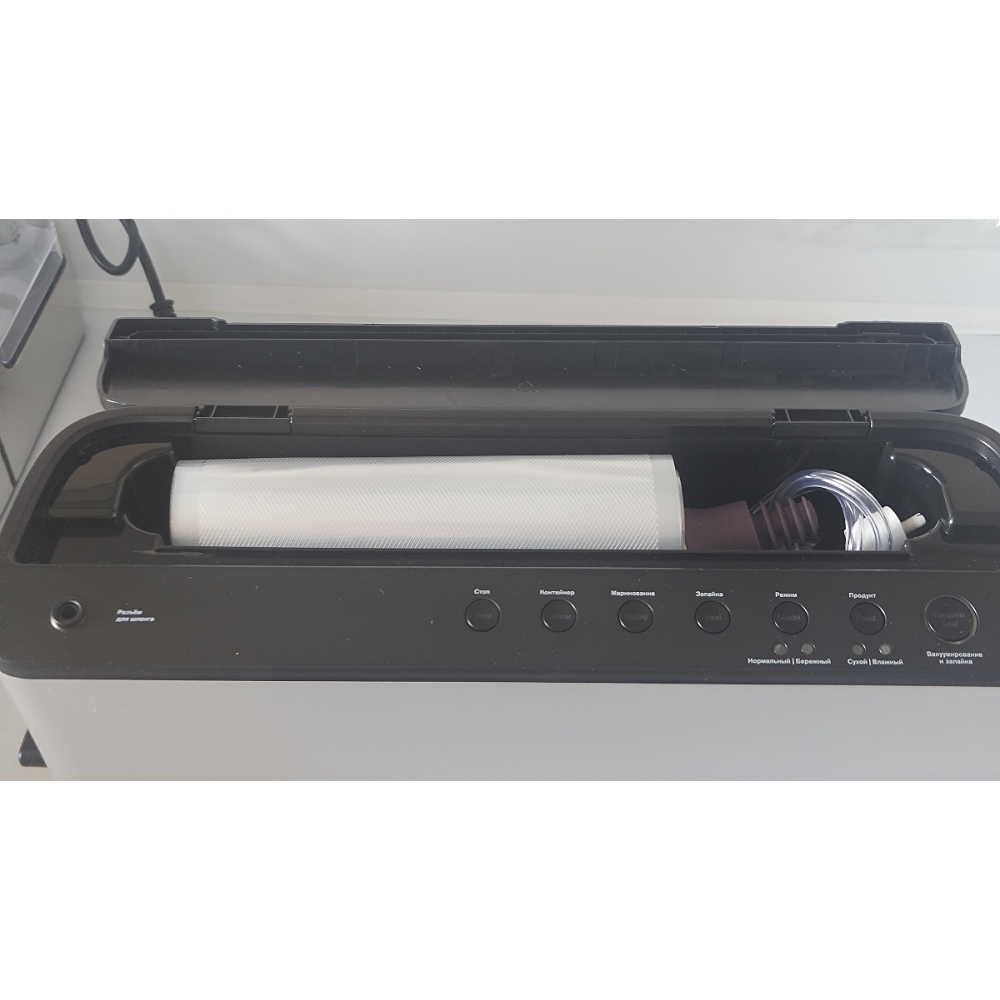 В корпусе вакууматора Dream PRO имеется специальный отсек для удобного хранения рулонов плёнки. Так её удобно хранить и она никогда не потеряется. А во время работы с вакууматором, плёнка для изготовления пакетов будет у Вас всегда под рукой.
